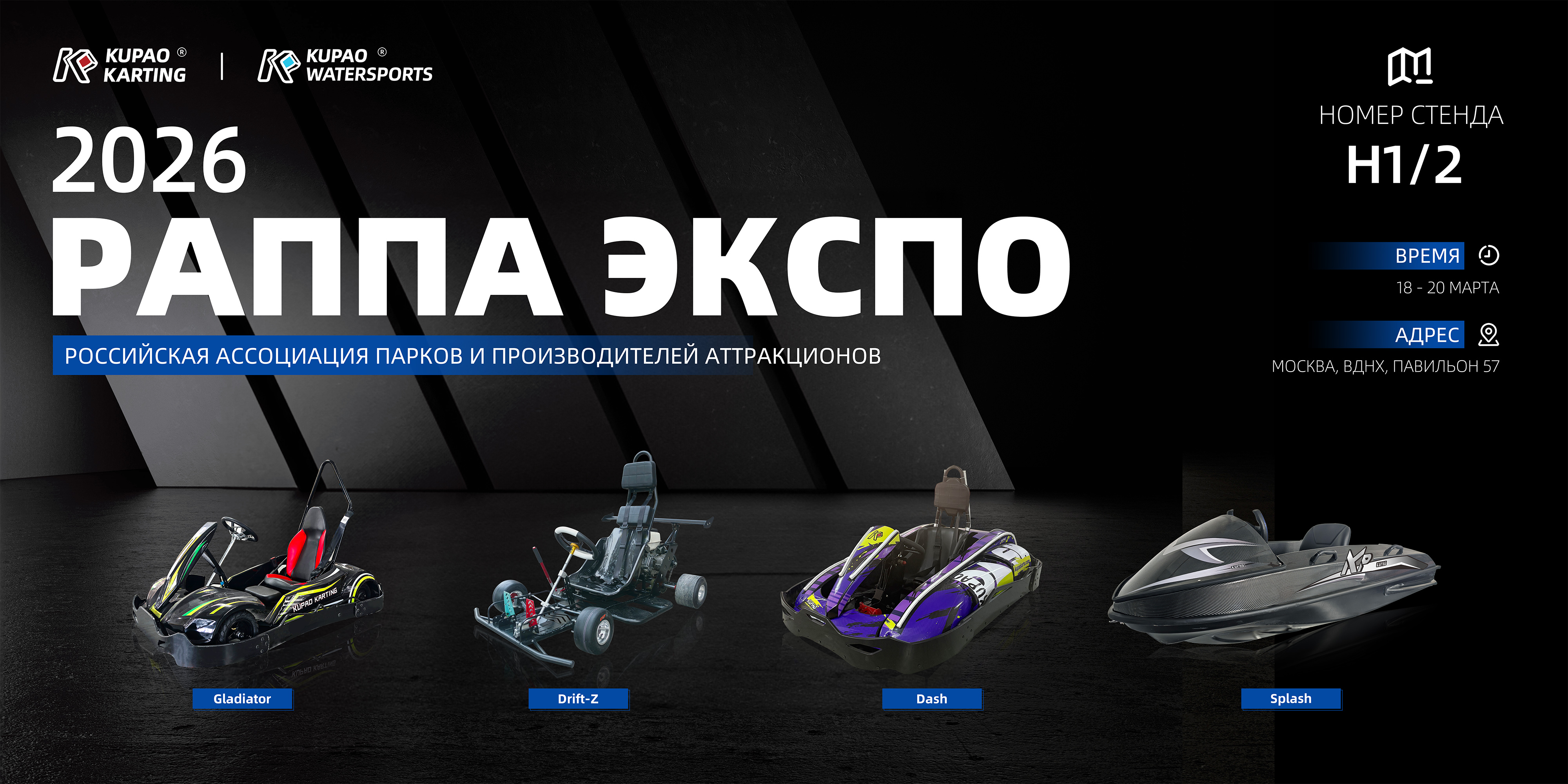 From March 18 to 20, 2026, KUPAO will showcase its latest innovative products at the RAAPA EXPO in Moscow, Russia. The exhibition will be held in Pavilion 57 at the All-Russian Exhibition Center (VDNH). We sincerely invite industry professionals from around the world to visit our booth and witness the latest advancements in water sports and recreational karting.